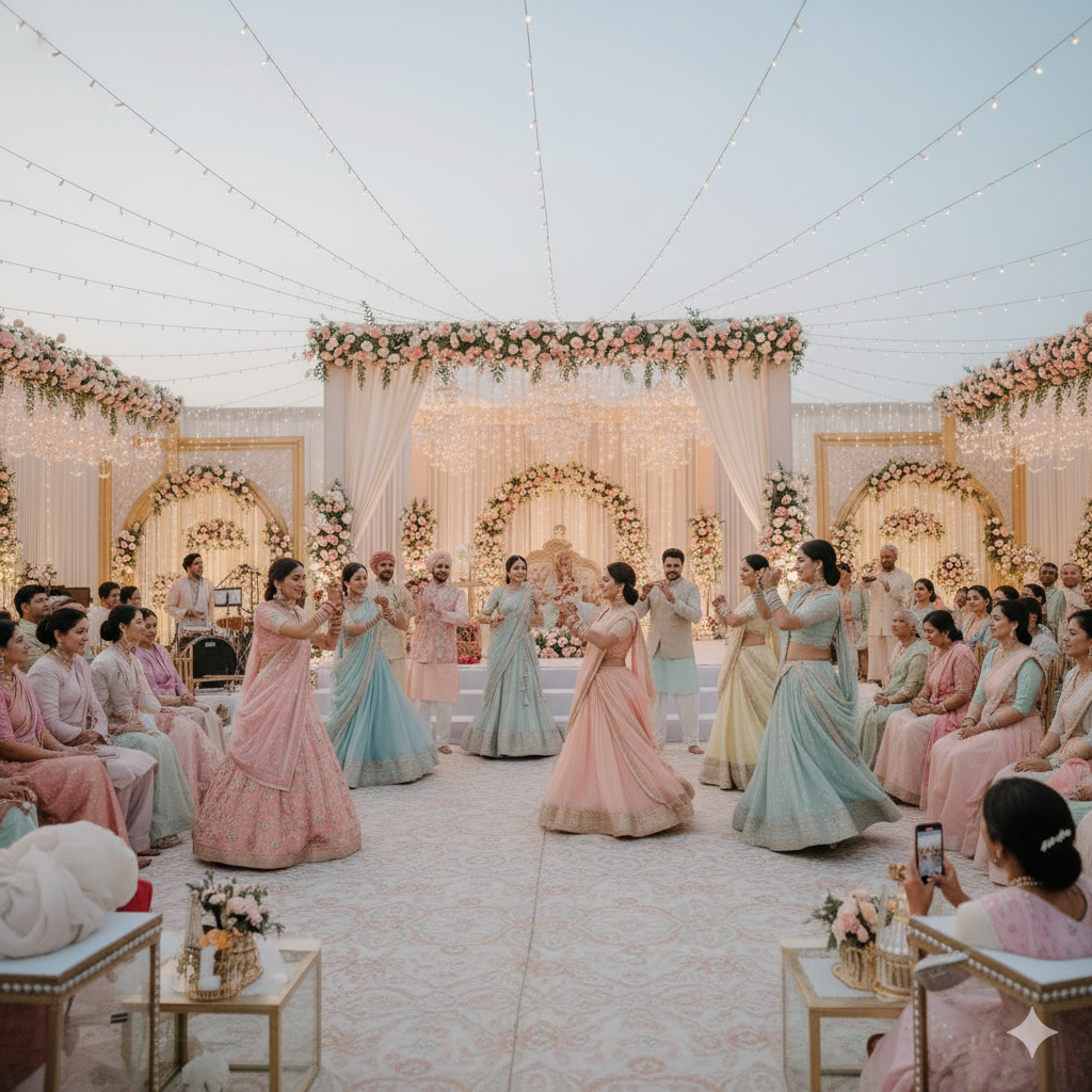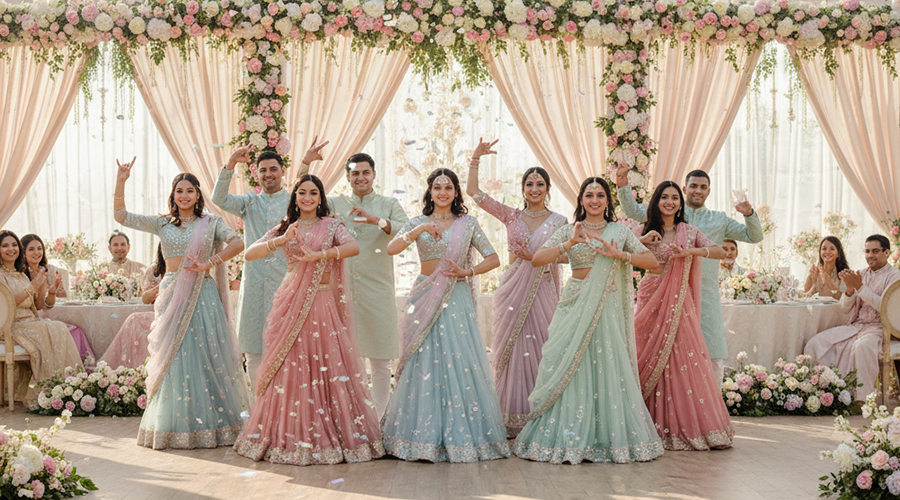 We provide both – professional dance troupes for grand stage performances and customized choreography for the bride, groom, family, and friends.