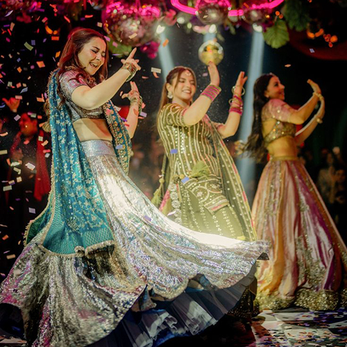 We provide both – professional dance troupes for grand stage performances and customized choreography for the bride, groom, family, and friends.