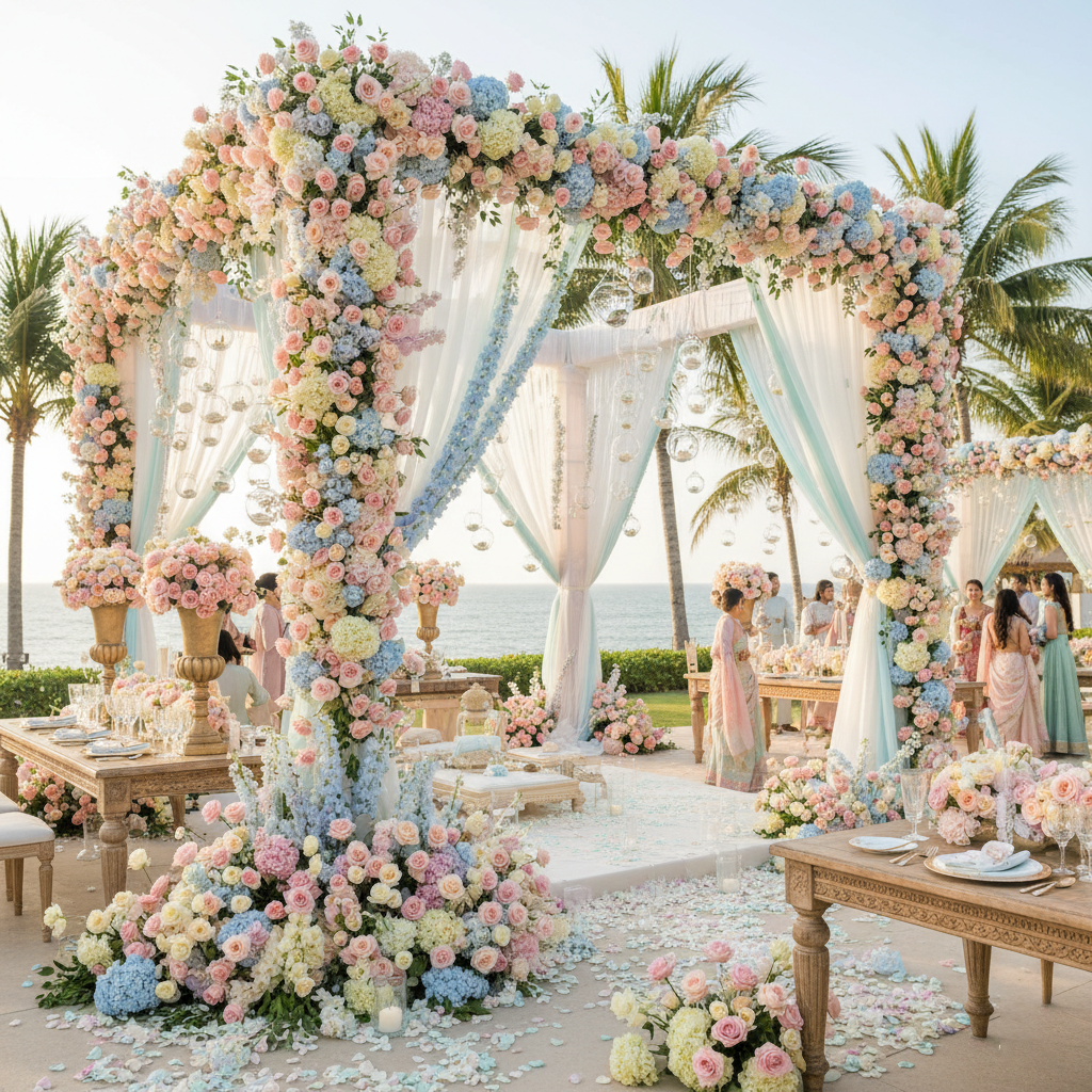 Flowers are more than décor—they symbolize love, purity, and prosperity. A well-crafted floral arrangement sets the tone, enhances the theme, and creates a magical experience for you and your guests.