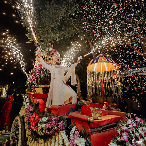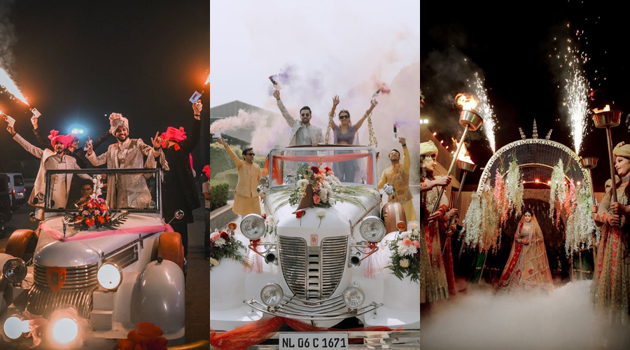 We offer royal entries, floral entries, musical entries, fairy-tale entries with fireworks, luxury car or vintage rides, and fully customized thematic entries.