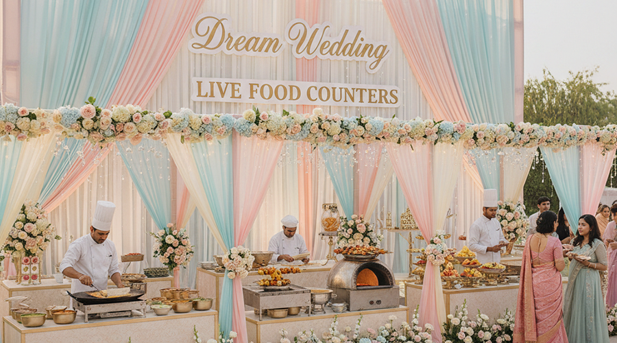 ✨ With Dream Wedding’s Live Food Counters, your wedding feast becomes a gourmet performance, making food the star of the celebration!