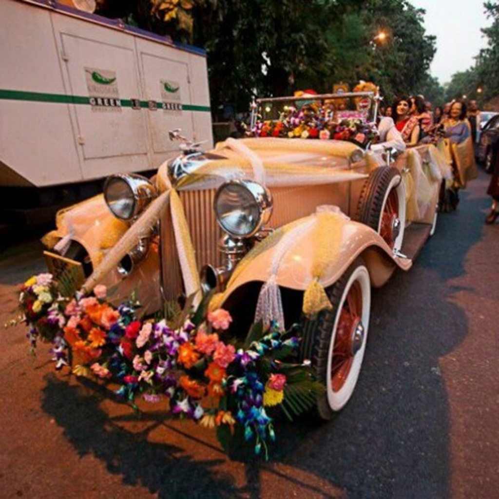 Yes, we have beautifully maintained vintage cars that add a regal charm to traditional weddings.