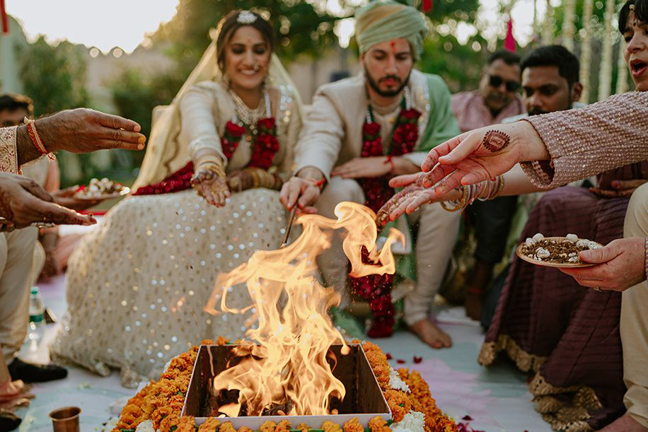 We create a detailed timeline and coordinate with families, pandits, and vendors to make sure rituals start and end on schedule.