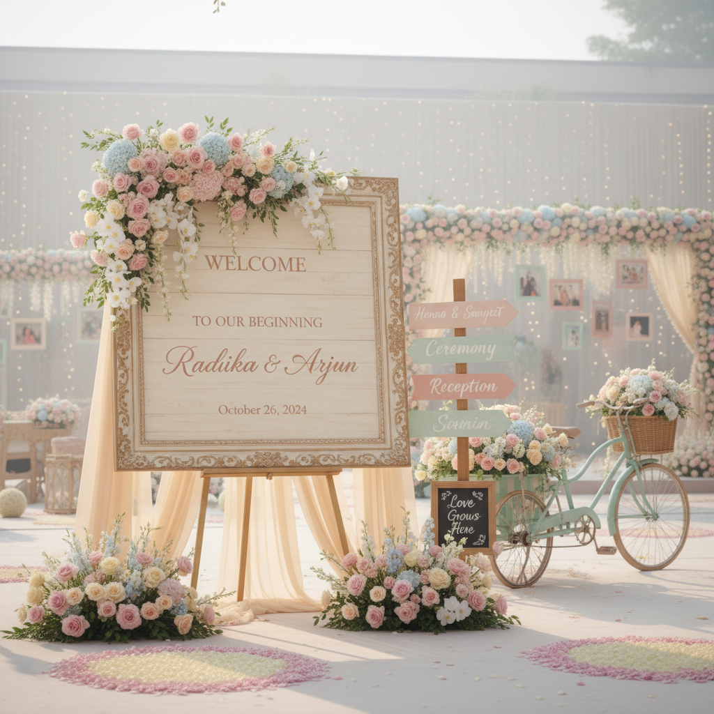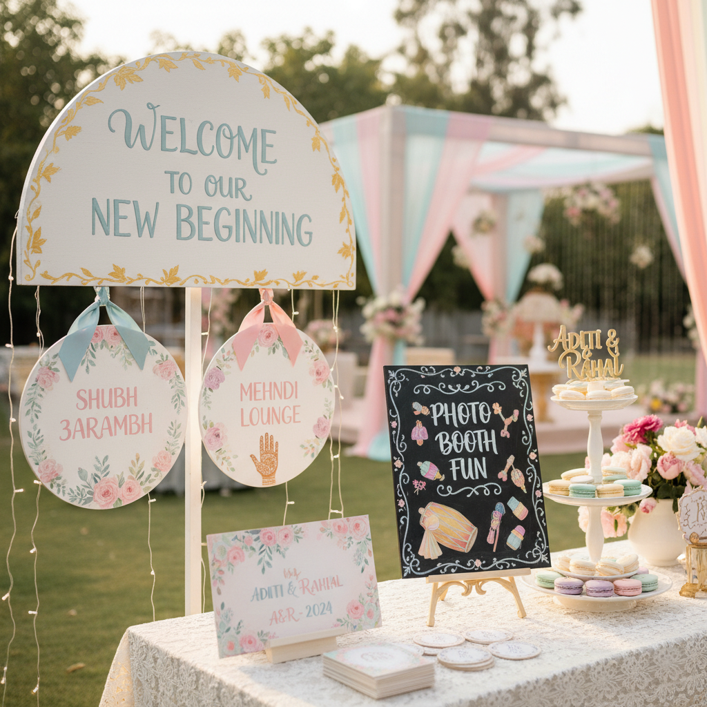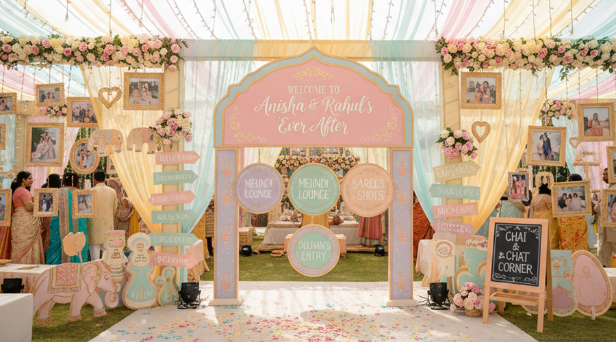 Definitely! All signages and décor elements are designed in sync with your wedding theme, whether it’s Royal, Rustic, Modern, or Bohemian.